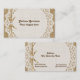 White doily with lace and burlap business card template design that features a white round doily with lace on linen natural burlap with ribbon and bow in beige with metallic effect and a white jewel. Text in brown. Note that lace, burlap, flower and jewel are all “printed on” and not real fabric, metal, gem or crystal. This elegant, sophisticated and romantic design with a rustic essence is fully customisable and is perfect for personal or professional use.