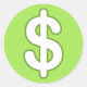 Currency stickers featuring a white dollar sign with green outline on a green background. Available in many colours.
