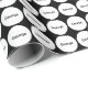 A wrapping paper designed with a white dot pattern on a black background and name. Customise the wrapping paper with your special name or text among other options.
