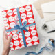 A wrapping paper designed with a white dot pattern on a red background and name. Customise the wrapping paper with your special name or text among other options.