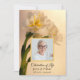 Honour the memory of your loved one with this graceful White Double Daffodil Flowers Spring Celebration of Life Invitation. Featuring a digitally painted floral photograph of delicate white narcissus flower blossoms with soft green stems against a creamy backdrop, this invitation perfectly blends elegance and serenity. Its timeless design is ideal for a springtime memorial service especially in March, April or May.