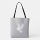 White dove bird on grey tote bag