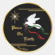 Brighten Up Your Package or Envelope with this "One of a Kind" White Dove Christmas Sticker! It Features a Serene White Dove Flying Among the Stars Carrying an Olive Branch with Flowing Red & Green Ribbons on a Gold Border.....Spreading