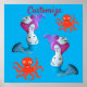 Cute Red Smiling Octopus and Pink-haired mermaid with white dove flying style design to customise, personalise by changing to your name on any background colour