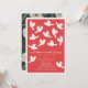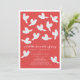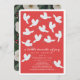 This elegant baby shower invitation features a red background with white doves carrying an olive branch. The reverse side features a dark green background with floral patterns. Personalise it for your needs. You can find matching products at my store.