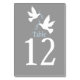 Two white doves with blue ribbon on grey wedding reception dinner table number cards or other dining event table numbers. A great idea to help guests find their seats at your wedding or event. You must change the number to each number that you need and add them each your cart, one at a time. Quantity discounts may apply once you add all the items to your cart. If you have any questions or need help or other wedding items in this style please contact me. Unique design by Sarah Trett.