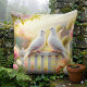 Two white doves rest together on a weathered garden gate, framed by blooming roses and soft spring foliage beneath a warm, glowing sky. The scene evokes gentle romance, peace, and timeless countryside charm, blending cottagecore nostalgia with a dreamy watercolor aesthetic. Pastel pinks, creamy whites, and sunlit greens create an airy, serene mood that feels tender, hopeful, and quietly joyful. The composition feels storybook and intimate, inviting a sense of calm, connection, and slow living inspired by floral gardens and rural beauty. AI generated artwork.