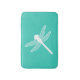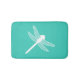 White Dragonfly Silhouette On Turquoise Bath Mat