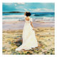White Dress Walking on Tranquil Beach Shoreline Poster