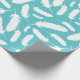 Add a light and airy touch to your presents with this feather print wrapping paper. This pattern features illustrations of white duck feathers against a teal or aqua blue coloured background.