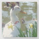 This cute white duck wades at the waters edge around the cheerful yellow daffodils. A glint of the sunshine on the water and the duck adds to the sunny mood. This photograph is lovely on these coasters where the duck will bring a smile to every visitors face. May make a great housewarming gift for a person or couple who love birds, ducks and wildlife.