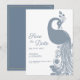This gorgeous pastel colours wedding invitation design features dusty blue and white royal peacock bird elegant Wedding Save the Dates invitations that are perfect for any classy and sophisticated ceremony. This exquisite geometric design is ideal for the trendy and stylish couple. Customise this design with your message and personalised information. All designs are printed.