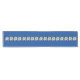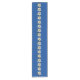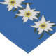 European inspired table runner done in blue with graphics of white edelweiss flowers running down the middle.