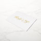 For one side of this wedding response card "RSVP" is in gold text that sits on top of a white background. The other side provides the recipient with a small form to complete prior to mailing the RSVP card.