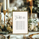 White elegant modern wedding table seating chart