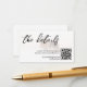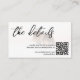 Simple, elegant black and white wedding details card with qr code and background photo.