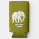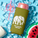A can cooler in pea green with white elephant.