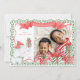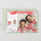 This cute White Elephant photo card features a watercolor elephant design with a festive holly border. The centre of the card contains your favourite photo. The words "Merry Christmas" are highlighted in white on a red ribbon banner. The back of the card has a vertical holly pattern.