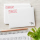Design features pre-written return address in red. Image of a white elephant is pictured at bottom right corner of envelope front. Inside is a festive red. Perfect for sending out White Elephant Gift-Exchange invitations.