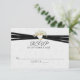 Gold heart with baby's breath bouquet and black ribbon border on elegant white embossed-like design for wedding RSVP.