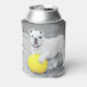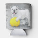 Cute digitally painted white English Bulldog with yellow ball. Grey and white background.