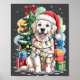 White English Golden Retriever Santa Hat Christmas Lights