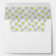 A white envelope lined with a white daisy pattern. Flowers for your messages!
