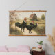 This wall hanging tapestry features a farm and field scene with vintage botanical artwork of White Faced Black Spanish Bantam Roosters and Chicken. The poultry artwork is from a vintage illustration in the public domain, available via the Flickr Commons, and it's placed on a farm journal background with a barn and autumn trees. The White Faced Black Spanish Chicken —often called "Clown Faced Chickens"—are a rare heritage breed available from several major hatcheries and specialty breeders.