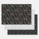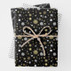 White Faux Gold Snowflakes Polkadots On Black Wrapping Paper Sheet