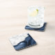 White Faux Marble Navy Blue Agate Silver Glitter Coaster