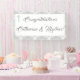 Design features the elegant appearance of white satin as background to a white rectangle. The word, "Congratulations" is displayed above the names of the bride and groom. Perfect for bridal showers, wedding receptions, etc. Designed to coordinate with the Catholic White Faux-Satin Monogrammed Wedding Suite.