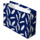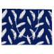White feather print on dark blue / navy - mixed media graphic design of white feathers, floating on a contrasting, coloured background