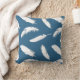 White feather print on denim blue cushion