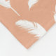Fleece blanket in a white feather print on soft peach / apricot - mixed media graphic design of white feathers, floating on a contrasting, coloured background