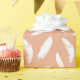 White feather print on soft peach wrapping paper