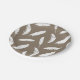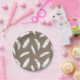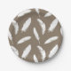 White feather print on taupe tan paper plate