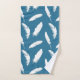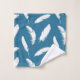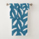 Towel set in a white feather print on medium denim blue - mixed media graphic design of white feathers, floating on a contrasting, coloured background