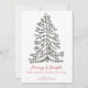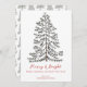 This festive and elegant white "Merry Christmas" holiday card features a detailed rendition of a festive winter tree, hand-drawn in black ink on an elegant white background. The back features a simple, elegant pattern of xmas trees. All text is editable. Personalise with your own holiday greeting on the front, your holiday messages and family name by simply clicking on "Personalise this template" on the Product Page.