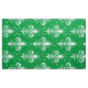 Elegant white fleur-de-lis seamless pattern over a custom green background.