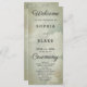 To add a touch of charm and sophistication, the words "Welcome," "Ceremony," and "Wedding Party" are elegantly rendered in a pretty decorative script font. This script font brings a sense of romance and refinement to the program, infusing it with a subtle touch of elegance. These scripted words serve as focal points, drawing attention to the key elements of the wedding day and enhancing the overall visual appeal of the program.
