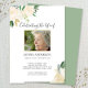 White Floral and gold Life celebration photo invitation. Invite friends and family to a life celebration or memorial service to honour your deceased love one. Feminine design with delicate florals and greenery with a touch of gold for grandmother, mother, sister, aunt, daughter or female cousin.