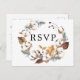 A white floral arrangement frames RSVP on the front of this RSVP postcard. Bright white cotton buds are surrounded by an assortment of lovely autumn fall leaves, acorns and evergreens to give it a modern botanical vibe. The reply options for both attendance and meal choices are on the back. You can insert your own address, for your convenience. This elegant RSVP postcard is part of the Autumn Cotton and Leaves collection. It contains all of the DIY wedding templates you need to create your wedding stationery. You should see a link to it on this page. If you don't see the link or of you need help with an item, please contact me.