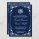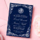 White Floral Blue Frame Islamic Muslim Wedding Invitation