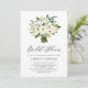 Invite guests to your event with this customizable bridal shower invitation. It features watercolour floral bouquet of white flowers. Personalize by adding your own details. This white floral bridal shower invitation is perfect for spring bridal showers and winter bridal showers.