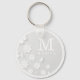White floral embossed name initials personalized key ring