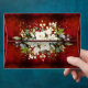 Gorgeous white and green botanical floral sprays. Scarlet bold rustic red distressed background. Gold splashes finish off this gorgeous wedding invitation envelope. Beautiful rich, classy red for any season.