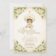 White Floral Gold Girl Charra Baptism 1st Birthday Invitation