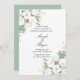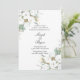 Elegant wedding invitation with white floral gold leaves.
