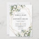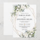 White Floral Greenery Gold Geometric Frame Wedding Invitation
