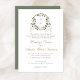 White Floral Greenery Ivy Monogram Crest Wedding Invitation